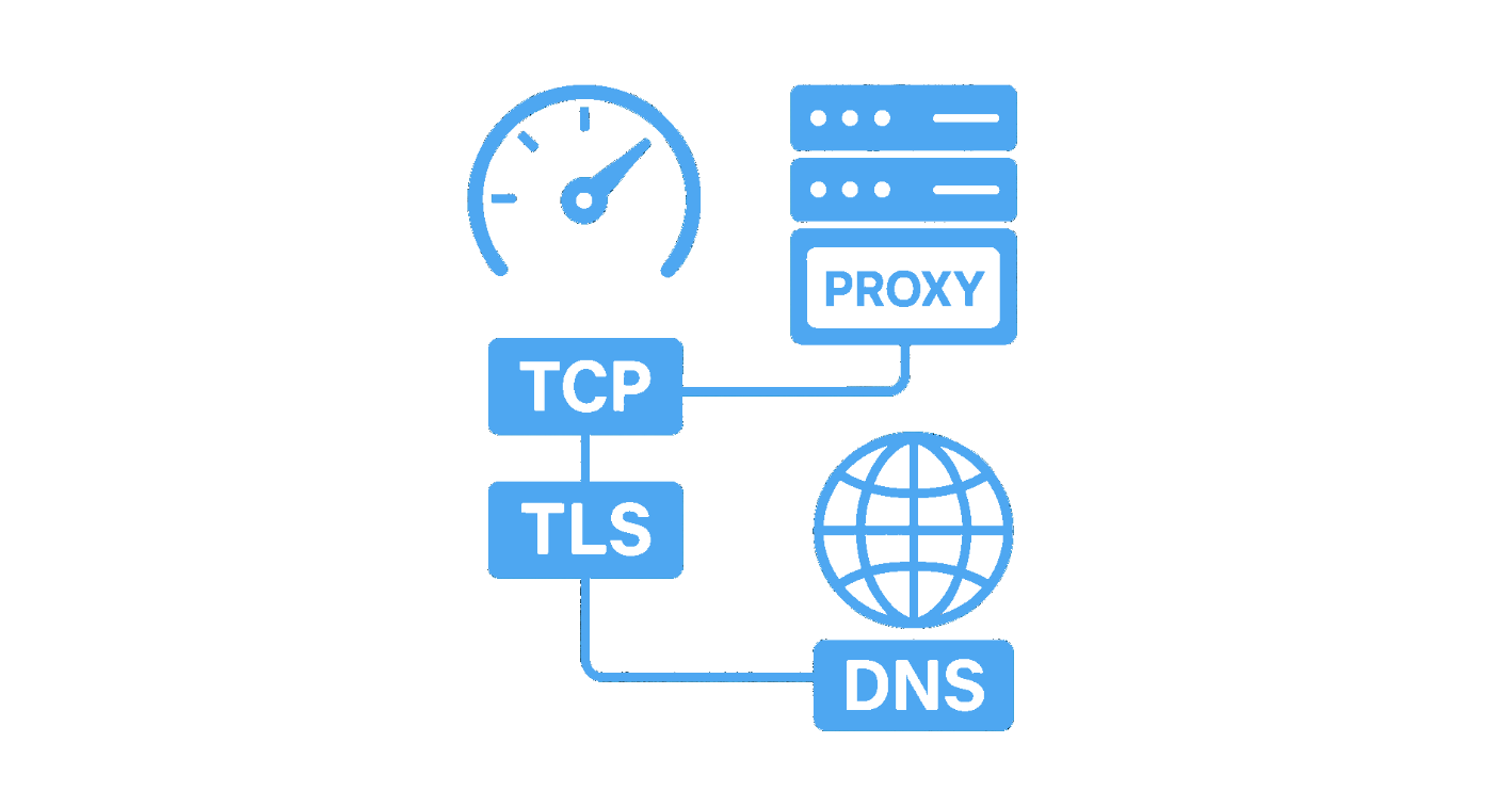 DNS lookups for target domains create additional latency, especially when proxy servers lack local DNS caching or rely on slow upstream resolvers. Each unique domain requires DNS resolution, and without proper caching, repeated requests to the same domain trigger unnecessary DNS queries that compound latency.