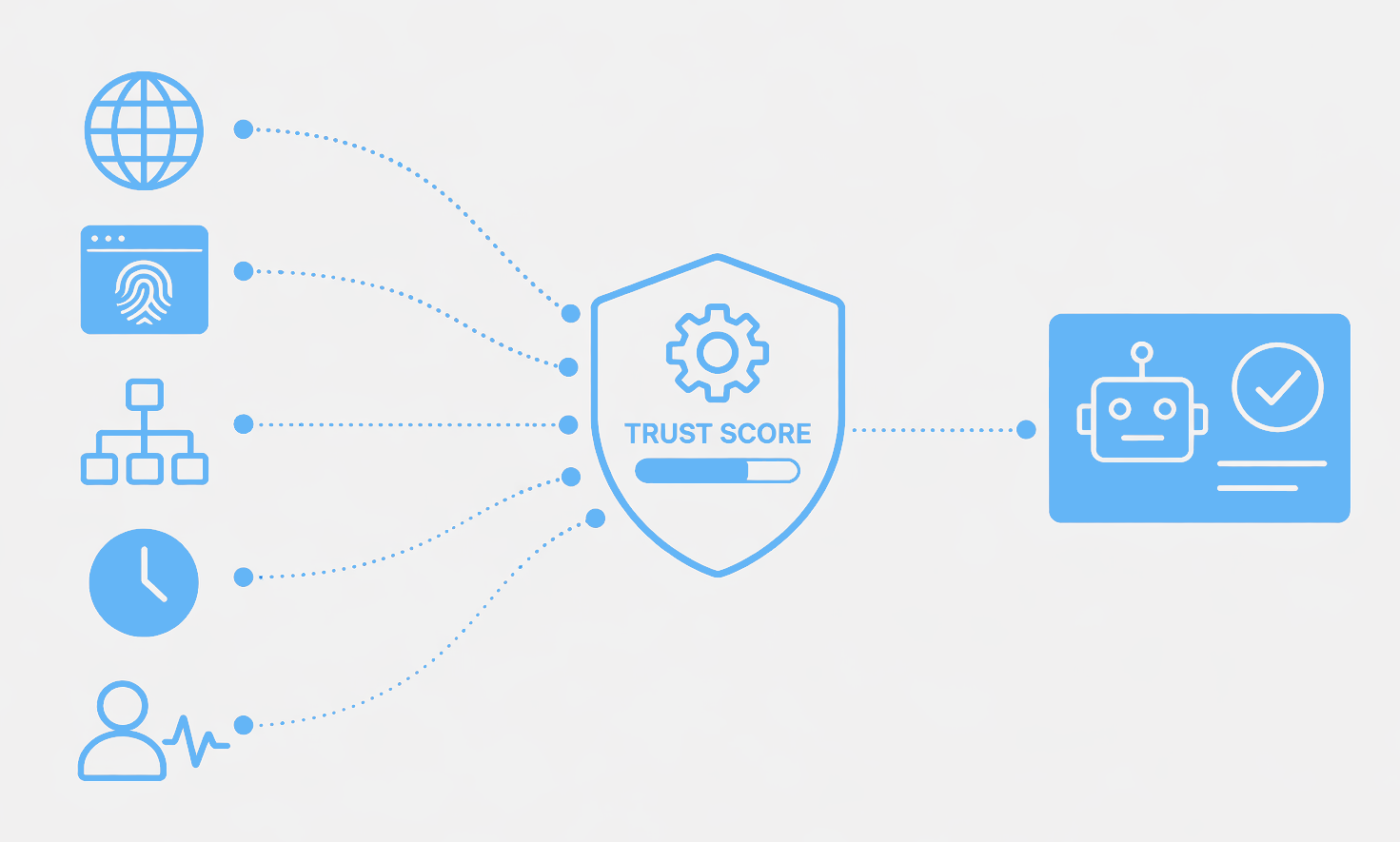 Trust scores change during a connection. If you request 100 pages in two seconds, your score drops. Real users don't do that.